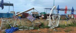 Tanjungpinang, Kepri – Ledaknews.com Angin kencang menerjang kawasan Gurindam 12 Tepi Laut, Tanjungpinang, pada Jumat malam (27/2) sekitar pukul 04.00 dini hari. Peristiwa tersebut menyebabkan belasan tenda dan gerobak pedagang, khususnya lapak penjual tepongken, mengalami kerusakan parah dan sebagian tidak dapat digunakan lagi.(27/2/2026).
