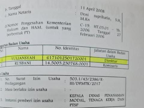 Dugaan tersebut dialamatkan pada Yuliansyah yang diketahui menjabat sebagai Direktur PT Cangka Jaya Nova. Dalam catatan tim penyidik Kejaksaan Tinggi Kalbar (Kejati Kalbar), PT Cangka Jaya Nova juga masuk dalam daftar pengusutan. Perusahaan ini adalah pemenang lelang pengadaan BBM nonsubsidi tahun 2020 yang berpotensi menyebabkan kerugian negara hingga miliaran rupiah.