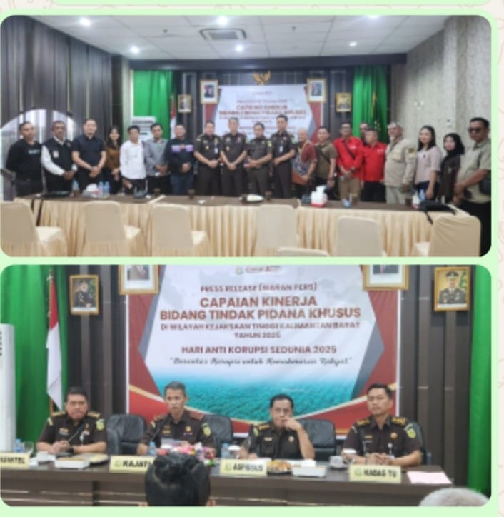 Pontianak, Kalbar– Ledaknews.com. Kejaksaan Tinggi Kalimantan Barat (Kejati Kalbar) memaparkan capaian kinerja penanganan perkara Tindak Pidana Korupsi (Tipikor) dalam rangka memperingati Hari Anti Korupsi Sedunia (Hakordia) Tahun 2025. Kepala Kejati Kalbar, Dr. Emilwan Ridwan, menyampaikan hal ini pada Selasa (9/12/2025) di Ruang Vidcom, Kantor Kejati Kalbar.