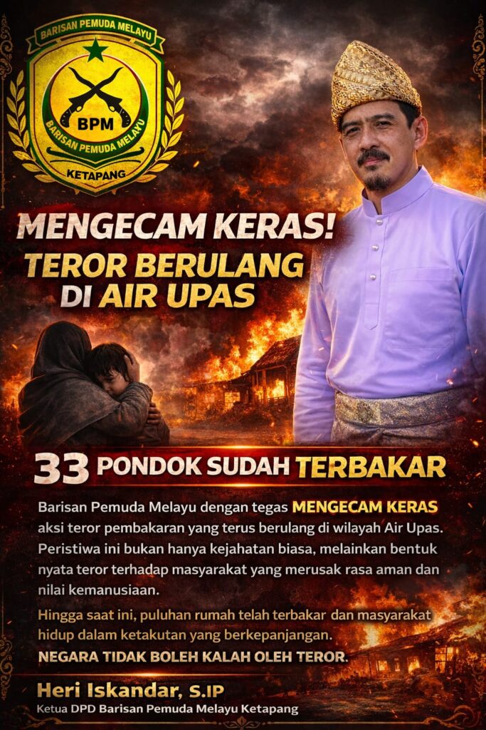 Ketapang, Kalbar — Ledaknews.com.(13 April 2026). Gelombang aksi pembakaran yang terus berulang di Kecamatan Air Upas, Kabupaten Ketapang, memicu kecaman keras dari Dewan Pimpinan Daerah Barisan Pemuda Melayu (BPM) Ketapang. Peristiwa yang telah menghanguskan puluhan rumah warga itu dinilai sebagai ancaman serius terhadap keamanan dan kemanusiaan.